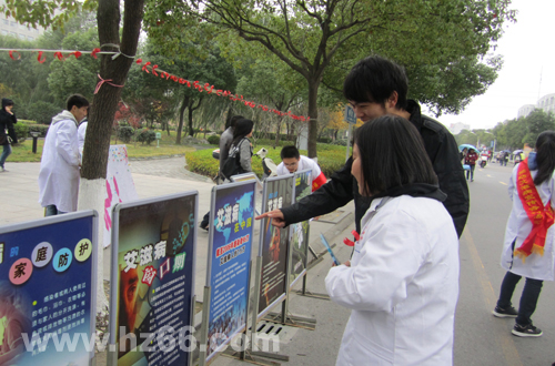 12月1日是第24个“世界艾滋病日”,宣传主题是“行动起来,向‘零’艾滋迈进”。今天中午,市疾控中心联合湖州师院开展宣传教育活动,号召学生“珍爱生命,预防艾滋,消除歧视”。记者在现场看到,通过展板展示、有奖竞猜等形式,向广大学生宣传防治艾滋病的知识,众多学生参与其中。