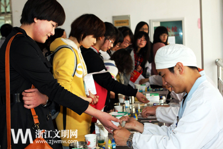 学院党委副书记周家健饱含深情地说:“我们给学生一个平台,他们还给我们的是更多的惊喜。”3年来,全院师生共参加无偿献血2059人次,献血58.6万毫升,有58人获湖州市无偿献血奉献奖,建成了湖州市首家无偿献血宣传教育基地。除了浙江省第一个大学生义工站,学校还建立了湖州城市文明加油站、城市管理义工队、红十字志愿者服务队,并依托各二级学院建立了网络文化市场志愿者监督队、旅游志愿者服务队、人民防空志愿者服务队等。学校在推进精神文明建设过程中,积极将文明创建融入湖州,坚持以文化育人、以文明滋养人。志愿者品牌的树立,展示了师院人无私奉献、服务社会的精神面貌。师院把文明细胞输送到社会的各个角落,用爱感动着这座城市,用文明风尚感染着这座城市,同时也将志愿服务打造为省内有名、国内有影响的品牌,为精神文明建设工作树立起一面面鲜艳的旗帜,使之成为社会主义精神文明和先进文化的辐射源。