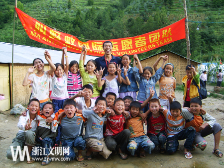 浙江省杰志愿者、2009感动湖州提名奖获得者校友王超在青川支教