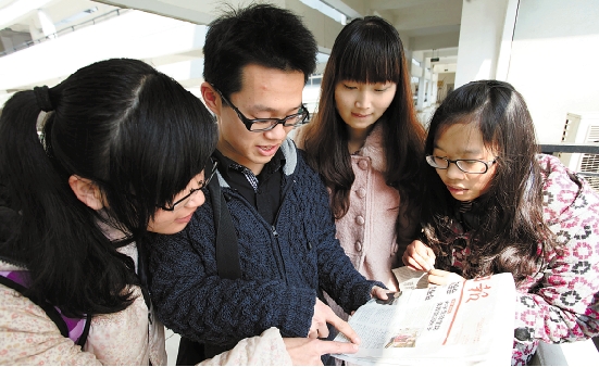 | 湖州师范学院的同学们正在学习徐建龙的感人事迹。 通讯员 李军 摄 |