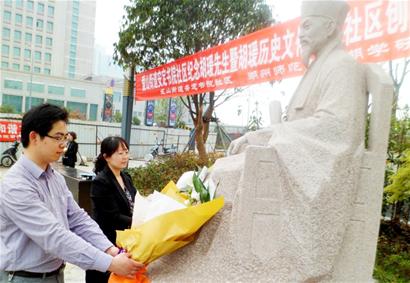 4月12日,《湖州日报》2版以《社区为湖州名人树雕像》为题,报道吴兴区爱山街道安定书院社区、湖州师院湖学研究会与居民志愿者们,为新树立的我市历史名人胡瑗先生雕像举行了揭幕仪式。全文如下: