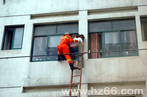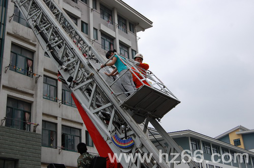 6月6日,湖州在线以《大学生演练高空“逃生”》为题,图文报道了我校举行消防演习的情况。全文如下: