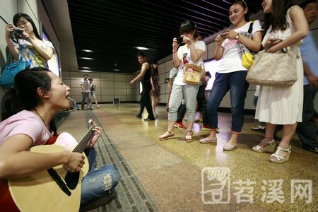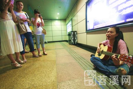 晚上7点,记者跟着“学院女孩”包梦瑶来到市中心的地下通道,进行毕业前的最后一次公开演唱。“之前一直在学校的地下通道里唱歌,过几天要回老家了,想和更多的湖州人分享我的快乐,也给自己的人生留点美好的记忆,所以来市中心。”她笑着说。