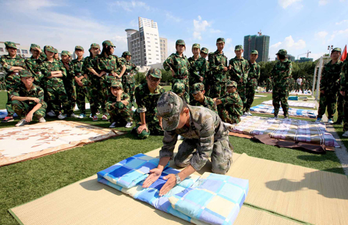 为了展示大学生的风采,丰富军训生活,湖州师范学院商学院于9月15日下午举办了一场精彩激烈的叠被子比赛,共有300名新生参加了这次比赛。