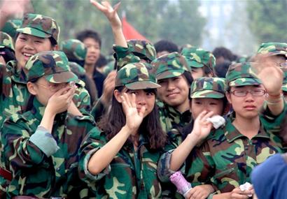 昨天下午,湖州师范学院2012级4800多名新生结束了为期两周的军训。图为大学新生在送别来自驻湖某部的教官。记者 庄新民摄