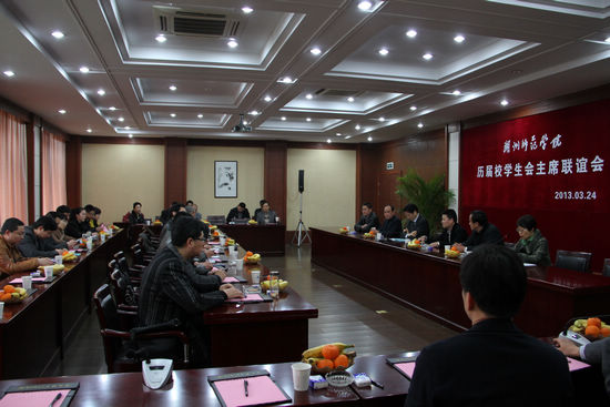 莘莘学子心,浓浓母校情。3月24日上午,历届校学生会主席座谈会在行政楼204会议室召开。校长胡璋剑、校党委副书记周家健、老领导蔡清江等出席,原嘉兴师专、原湖州师专、原湖州师范、原湖州卫校和湖州师范学院的40多位历届校学生会主席参加了座谈。会议由校友联络办公室主任杜宁主持。