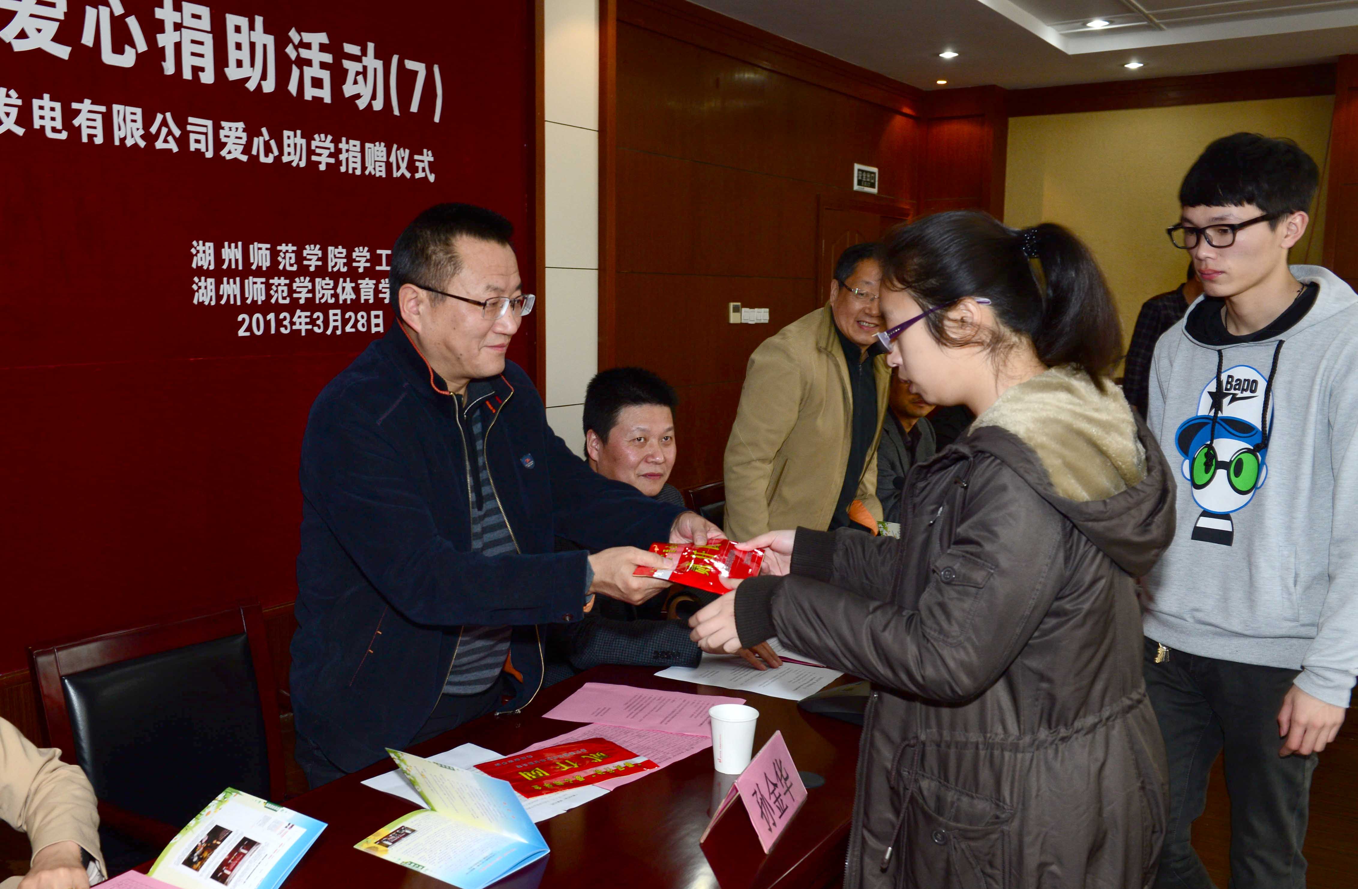 昨天下午,在湖州师院举行的第七届“春风行动”爱心捐赠活动上,浙江浙能长兴发电有限公司再续爱心接力篇章,为该院15名家庭经济困难学生发放爱心助学款3万元。