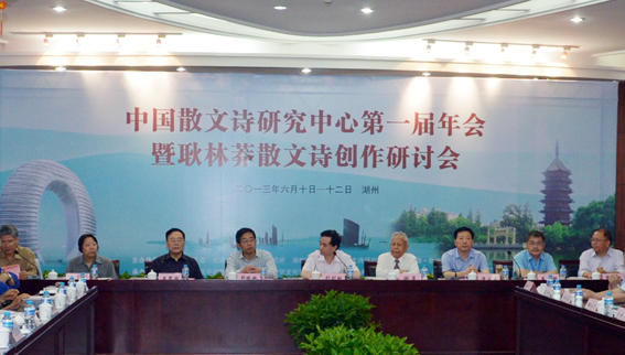 湖州师范学院中国散文诗研究中心第一届年会暨耿林莽散文诗创作研讨会,于6月10日至12日,在美丽的南太湖之滨隆重举行。本次盛会由中国诗歌学会、北京大学中国新诗研究所、湖州师范学院中国散文诗研究中心、《文学报•散文诗研究》专刊联合主办,湖州师范学院中国散文诗研究中心、湖州市普觉文化发展有限公司承办,湖州市旅游局、湖州新城国际广场协办。