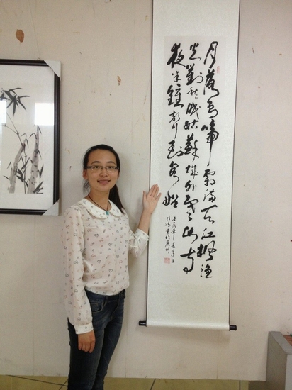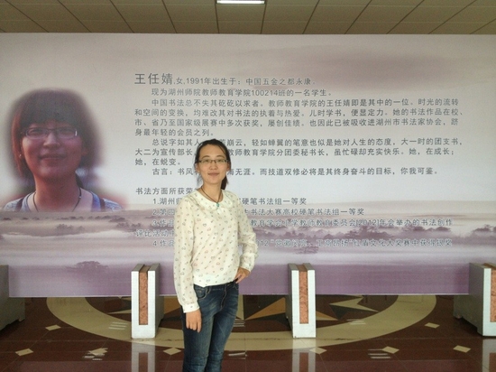 因为书法出众,王任婧在大二期间还被教师教育学院聘为“三笔字小先生”,承担着大一三个班每周各一节的书法教学课。“在我们专业像我一样从小学习书法的同学很少,使得我在专业课书法练习上占有很大的优势。我也很高兴能有这样的机会,与学弟学妹们交流书法练习的心得。” 王任婧说。
