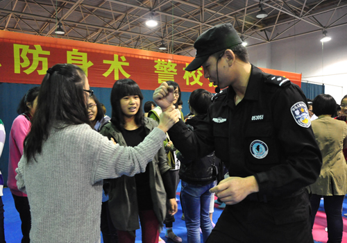 昨晚,湖城龙泉派出所高校警务站邀请湖州市特警支队的队员为湖州师范学院的同学们上了一节有趣而实用的课——防身术训练。 5位受过专业训练的特警给同学们演示了解脱、推掌、防守等一些防身小技巧,让同学们养成安全防范意识。