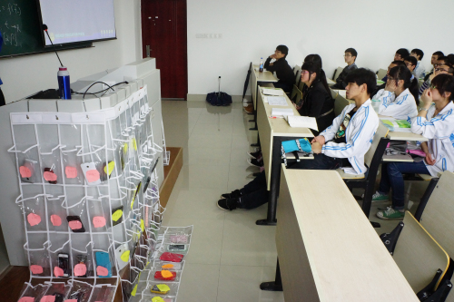湖州在线讯 课堂上,老师在辛苦讲课,学生却低头玩手机,让老师颇为头疼。如何改善这一情况,把学生精力回归课程和学业,让课堂变得简单而纯净,从4月份开始,湖州师范学院工学院在2013级试点“无手机课堂”,给每个班级配上统一的手机袋挂在讲台上,袋上写好每个学生的姓名,给手机安家,让学生安心地上课。