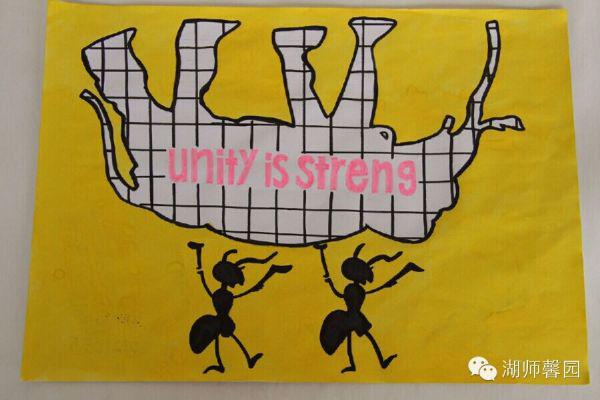 以上作品脱颖而出,被评为本次比赛的优秀作品。关于作品《sunshine》王梦娇如是说:“每个人的内心都有两面,一面光明,一面黑暗。希望大家的内心都能如太阳一般发光发热,照亮周围。”对于《蚂蚁在行动》这幅墙绘,高纯妮解释道:“如图一样,瘦小的蚂蚁却能举起比自己大数倍的大象,这无疑彰显了团结就是力量的寓意。”