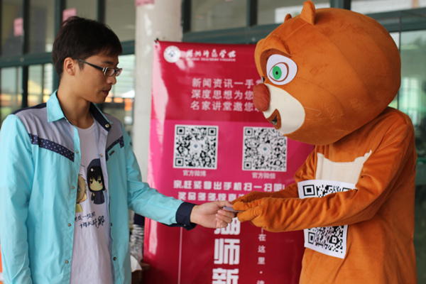 2014年9月17日,《浙江教育报》2版以《湖州师范学院官方新媒体平台的3位志愿者,变身萌萌的“官微熊”迎新》为题,报道了我校官方新媒体平台三只萌萌的 “官微熊”为新生答疑解惑情况。全文如下: