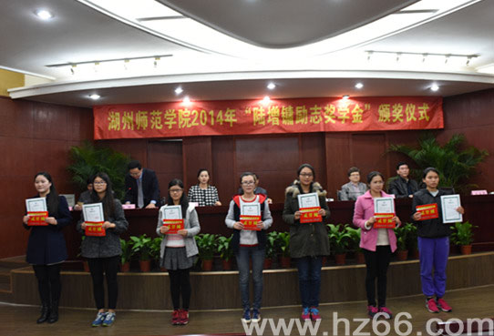 湖州在线讯 11月26日下午,2014年“陆增镛励志奖学金”颁奖仪式在湖州师范学院举行,125位学生获颁每人2000元的奖学金奖励。香港亚非集团嘉宾陆增祺、陆雅仪等专程到场颁奖。