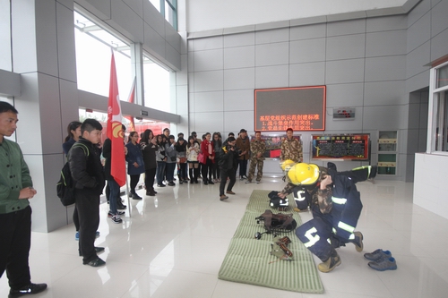 师生们首先参观了车辆装备器材,消防官兵们详细讲解了各种特种器材装备的使用方法、功能、用途等,并为他们现场进行了演示。随后,在官兵的带领下,师生们参观了内务设置,为他们介绍了大队的日常生活制度,在参观战士寝室时,寝室内豆腐块似的被子、干净的门窗和整齐划一的物品摆放赢得了在场师生阵阵掌声。为了让同学们进一步感受部队生活,官兵们通过现场示范,让同学们亲身体验一次“豆腐块”产生的全过程,平日严肃紧张的警营,迎来了和谐的微风和温暖的阳光。