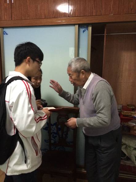 时值抗战胜利70周年,为致敬战士英魂,弘扬抗战精神,湖州师范学院商学院“致敬抗战历史,同沐核心价值”暑期实践团队分别走访吴兴区八里店毛家桥村蔡塔自然村、凤凰街道机南村等地探寻抗日老英雄,传唱英雄事迹,宣传抗日英雄英勇无畏、舍我为国的抗战精神。