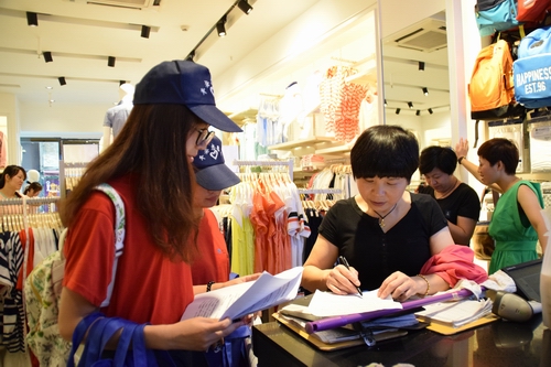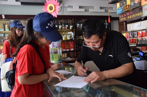 从昨天起,一群统一戴着“平安志愿者”帽子的年轻人顶着炎炎烈日,行走在中心城区各个繁华路段。他们是湖州师范学院求真基础部“安全意识入民心,平安创建遍湖城”实践服务团的志愿者,他们分成若干个小组,对走访的市民进行“平安湖州”群众安全感问卷调查,问卷的内容涉及了平安创建主题、周围安全情况、安全生活满意度等方面,调查结束后,志愿者们还送上了一分平安宣传的小礼物。