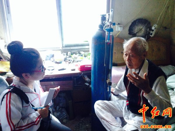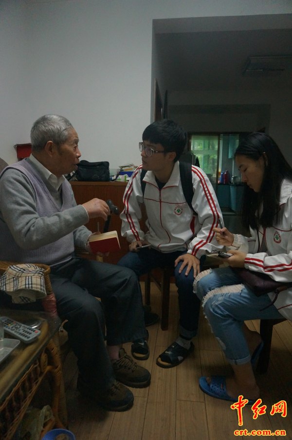 中红网浙江湖州2015年7月16日电(杨玉华、王静怡、朱秀剑)时值抗战胜利70周年,为致敬战士英魂,弘扬抗战精神,湖州师范学院商学院“致敬抗战历史,同沐核心价值”暑期实践团队分别走访吴兴区八里店毛家桥村蔡塔自然村、凤凰街道机南村等地探寻抗日老英雄,传唱英雄事迹,宣传抗日英雄英勇无畏、舍我为国的抗战精神。
