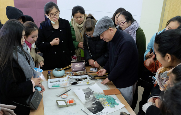 讲座持续一个半小时,临近尾声,李志刚老师现场作画,并在“书赠有缘人”环节将自己的作品集连同艺术学院导读赠书一并送给在座师生,师生共勉:在喧嚣的尘世里谨戒浮躁,要注重自己的修为,勤加修炼,升华自己的人格。
