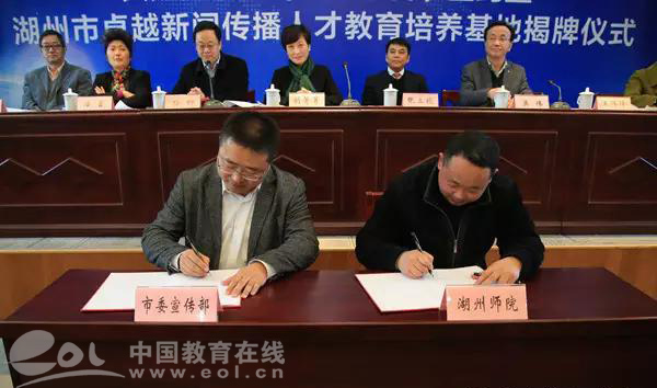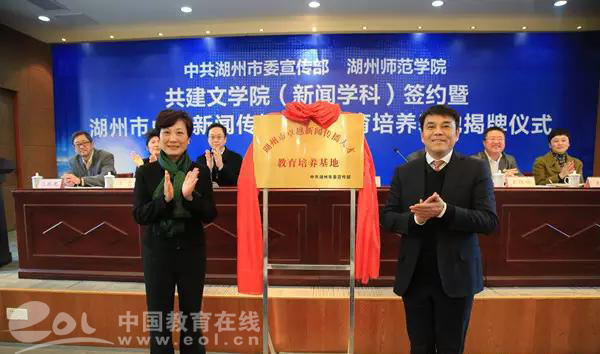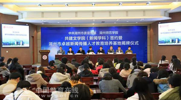 2015年12月5日,中国教育在线浙江站以《湖师院与湖州市委宣传部合作共建文学院》为题报道了市委宣传部与我校共建文学院(新闻学科)正式签约。全文内容如下: