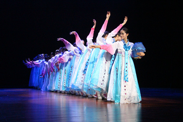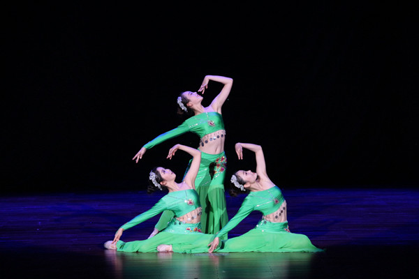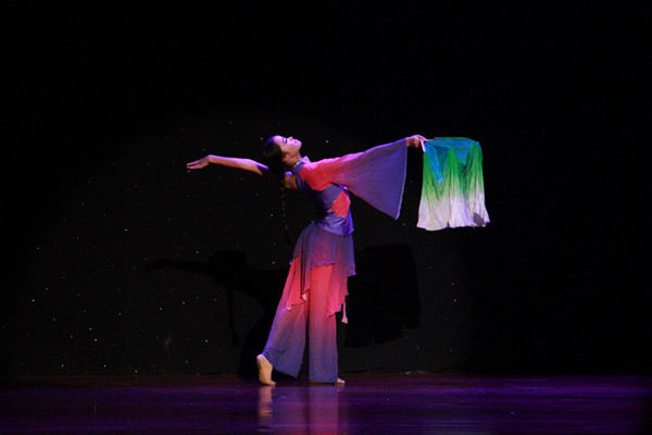 一段富有异国风情的匈牙利性格舞蹈拉开演出的序幕,舞蹈《喜水》描绘了三位傣族少女在溪水边嬉戏的欢快场景;轻快的喜鹊声随着舞者们轻盈的步伐由远及近,不同于一般舞蹈的优雅柔美,舞蹈《喜鹊喳喳喳》描绘了热闹、欢腾的场面;群舞《泉》中,身着朝鲜族传统服装的少女们,头顶瓦罐、踏着歌声翩翩起舞;独具民族风情的《狼图腾》由教师教育学院为数不多的男生演绎,表现了刚劲之美;群舞《在我生长的地方》展现了祖国壮丽的美好山河;或古典或现代的单人舞串烧、别具风格的现代双人舞《镜中人之你本来就很美》,最后的技能技巧展示环节将演出推向高潮,看似简单却难度极高的动作是同学们平时一遍又一遍训练的成果,博得观众阵阵掌声。舞台上绚丽的灯光、舞者们倾情的演绎、60多名工作人员默默地付出,使得演出圆满落幕。“每天晚上我们都在舞房里练到寝室关门才回去,昨晚我们对灯光对到了晚上11点多,为的就是今晚能展现出最好的状态。”一位舞者演出后兴奋地说道。