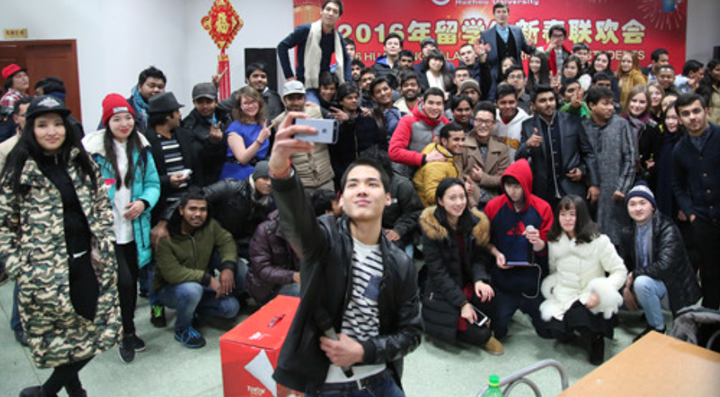 大家一起过年,自拍可是必须的。这么多不同国家,不同民族的同学在一起过新年,感觉棒棒的。
