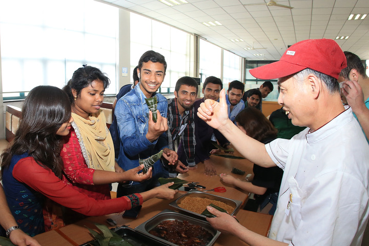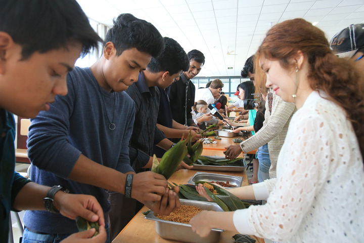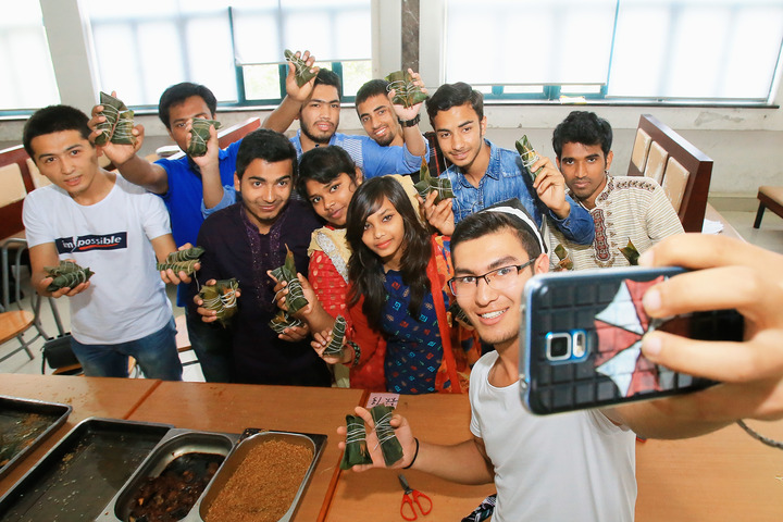 6月8日,在湖州师范学院学习的几十名来自巴基斯坦、孟加拉国、乌克兰、哈萨克斯坦等国的留学生,在学校食堂大厨的指导下有模有样的学起包粽子,在浓浓的粽香中感受端午传统文化。