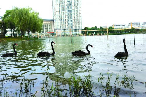 前天,湖州西山漾国家城市湿地公园向湖师院捐赠3对黑天鹅,让它们安家美丽的德清湖,美化校园生态环境,也向同学们传递与自然和谐共处的理念。