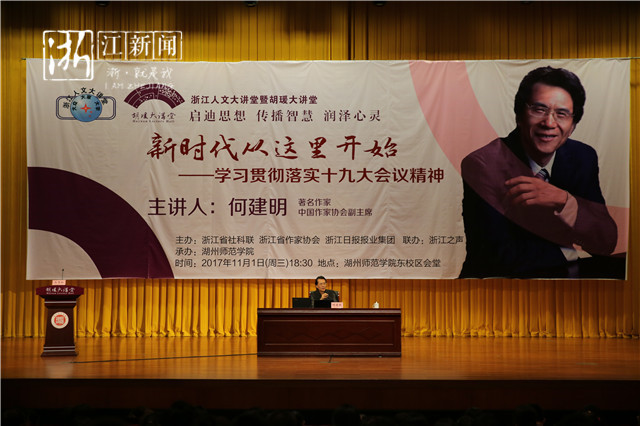 2017年11月2日,浙江新闻APP以《湖师院1500多名学子聆听著名作家宣讲十九大精神》为题,报道著名作家何建明来我校宣讲十九大精神。全文如下:
