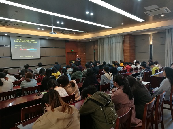 应我校校长张立钦的邀请,4月1日,英国皇家学会会士、牛津大学Nicholas Harberd教授在浙江大学郑绍建教授的陪同下来我校交流访问,分别作《绿色环保革命:生长-代谢协同调控》、《植物应对营养逆境之策略》学术报告。报告会由张立钦主持,省媒介生物学与病原控制重点实验室、生科院药学系骨干教师及2017级学生代表聆听了报告。