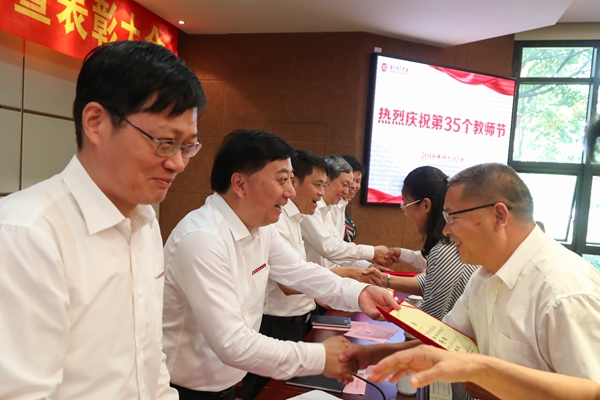 9月10日下午,我校召开庆祝第35个教师节暨表彰大会。校党委书记金佩华,校长张立钦,校党委副书记蒋云良,副校长叶金云,纪委书记朱鸿,副校长马志和、陈亚明、舒志定,党委委员、组织部长何小青,党委委员、宣传部长杜宁出席,全体中层干部,获奖教师代表,各二级学院及职能部门教工代表,附属医院代表参加了大会。会议由金佩华主持。