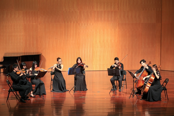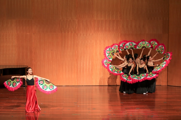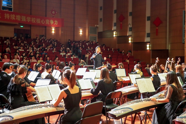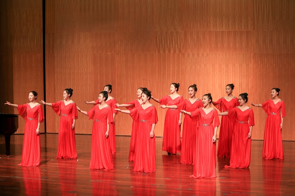 音乐会上,民族管弦乐合奏《茉莉花》《我的祖国》,民族女生独唱《对鸟》,钢琴独奏《百鸟朝凤》,小合唱《青春中学》等优秀传统文化节目精彩上演,还有《b小调协奏曲》《D大调协奏曲》《喀秋莎》等外国作品节目依次呈现,东方的沉稳大气和西方的轻巧灵动相碰撞,为演出带来了更多的生机。男声民歌独唱《乌苏里船歌》中,演唱者的嗓音和灵动的钢琴声融为一体,充分体现出了少数民族的地域风情,《满园春色》舞蹈中羽扇与罗裙划出一道道优雅的圆弧,绽放着华丽的光彩。晚会在体现我国富强繁荣,一步步走向美好明天的大合唱《走向复兴》《歌唱祖国》中落下帷幕。