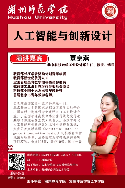 覃京燕,北京科技大学工业设计系主任、教授、博导,教育部长江学者奖励计划青年学者,教育部新世纪优秀人才;全国首届美育教学指导委员会委员;教育部工业设计教学指导委员会委员;科技部全国十大杰出青年设计师;首届北京市青年教学名师。负责建设国家级一流本科课程一门。北京科技大学的国家虚拟仿真教学实验平台、国家级一流本科专业建设点(工业设计专业)、全国普通高校中华优秀传统文化传承基地(传统金属工艺)负责人。全球首开《人工智能与创新设计》本科生课程及慕课,负责的英文版慕课《Artificial Intelligence & Innovation Design》获批教育部首批国际版慕课。主持国家及省部级纵向科研项目27项。论文126篇,著作10部,国内外设计奖项30余项,发明专利及软件著作等15项。