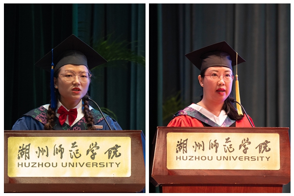 护理学院毕业班班长,获得研究生国家奖学金的研究生代表祁欢怀着一颗感恩的心,感谢学校的培育、导师的教诲以及同学们的帮助;同时表达出对未来的热爱和向往,并送上真挚的祝福,祝福母校早日实现“在国内由一定影响、一定水平、一定地位的湖州师范大学”的目标!