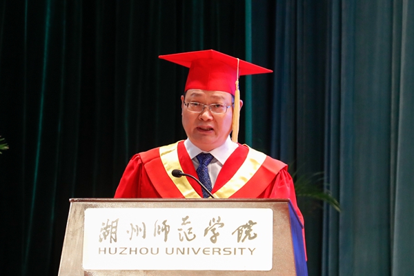 校长蒋云良在致辞中表示:同学们应当把立徳修身放在首位,端守自己的内心,保持心灵的“本”与“真”,不为外物所奴役,不被流俗所诱惑。在今后的工作生活中,明白“绠短不能汲深井,水浅难以载大舟”的道理,只有坚持学习,方能在探索中激发无限潜力,在难题困境中守得万里云开。蒋校长期望同学们既要立志高远,胸怀家园,也要直面困难,勇于前行。以崇高的理想信念,抵御浮华与困苦的挫折,以咬定青山不放松的意志力,坚定地朝着自己的方向无畏前进。
