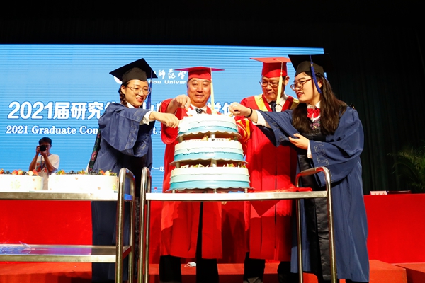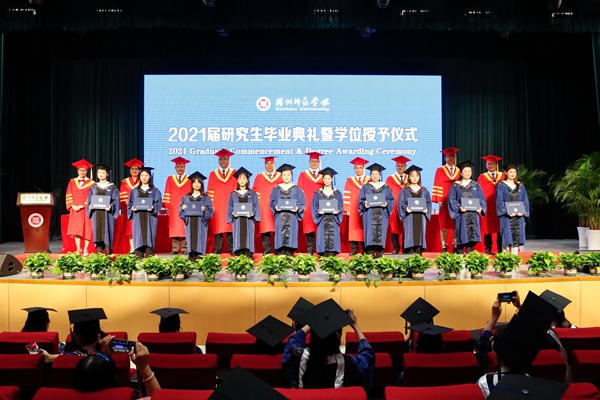 舒志定宣读2021届硕士研究生毕业名单,校党政领导班子为2021届研究生颁发毕业证书。