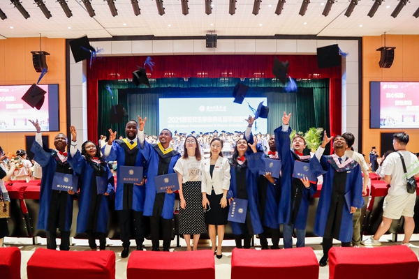 据悉我校共有98位研究生获得硕士学位,包含10名首批从我校顺利毕业的国际研究生。