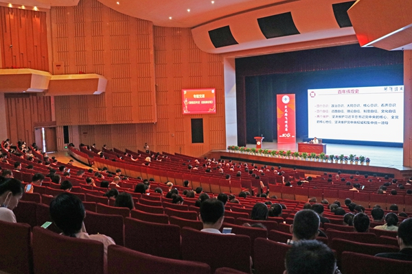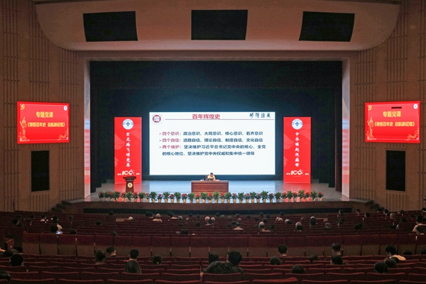 课上,金佩华用“一个根本成就、两场伟大革命、三次伟大飞跃、四件大事”精辟地讲述了中国共产党的百年辉煌史,开创、坚持和发展了中国特色社会主义这一根本成就;领导人民进行伟大社会革命和领导全党进行伟大自我革命两场伟大革命;实现从“站起来”到“富起来”再到“强起来”的三次伟大飞跃;完成和推进了救国、兴国、富国、强国四件大事。金佩华指出,中国共产党的100年是不忘初心、牢记使命、接续奋斗的100年,要按照习近平总书记在党史学习教育动员大会上“用党的奋斗历程和伟大成就鼓舞斗志、明确方向;用党的光荣传统和优良作风坚定信念、凝聚力量;用党的实践创造和历史经验启迪智慧、砥砺品格”的要求,通过深入学习党史,进一步树牢“四个意识”,坚定“四个自信”,坚决做到“两个维护”。