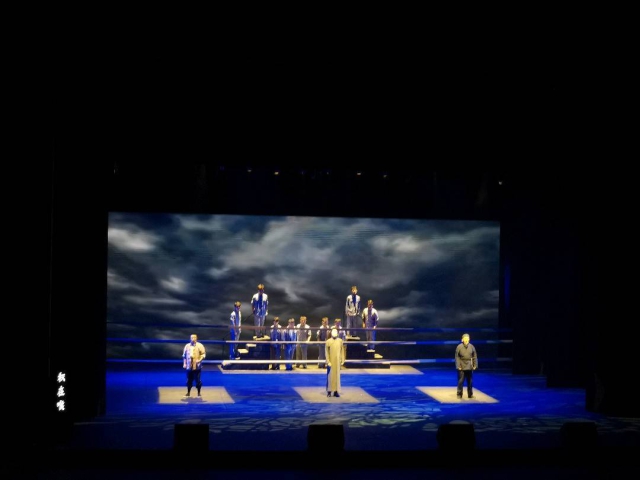 开场合唱“声磊落,士拼搏,百死为家国,宁摧折,不蹉跎,斗转星移过,说乾坤苍莽蕴奇忧,好江山莫与后人愁,宣言朗朗,但出我口,用在心头!”表达出以张人亚同志为代表的早期共产党人的勇毅精神和坚定意志。