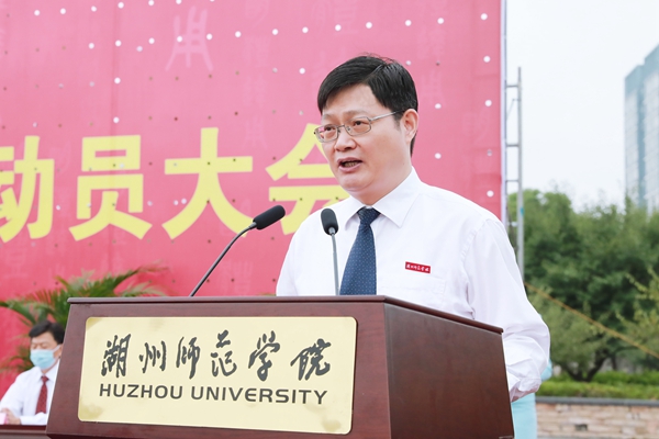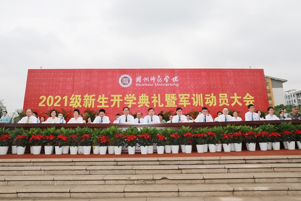 9月15日上午,我校2021级新生开学典礼暨军训动员大会在学校长兴广场隆重举行。校党委书记金佩华,校长蒋云良,校党委副书记陈永华、丁敢真,副校长舒志定,纪委书记任伟海,副校长潘音、李庆峰,党委委员、组织部长何小青,党委委员、宣传部长杜宁,党委委员、办公室主任劳士健,中国人民解放军某部队军官、军训团团长刘飞出席。各二级学院及校相关部门负责人、教师代表、承训部队教官和3600余名2021级本专科、研究生新生参加了开学典礼。开学典礼由丁敢真主持。