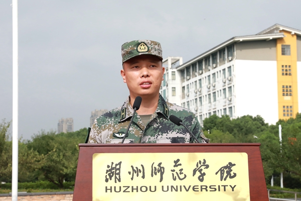 刘飞代表承训部队讲话。他指出,军训期间,同学们要按照军人的标准严格要求自己,继承和发扬不怕苦、不怕累的精神,圆满完成各项任务。同时,他希望新生通过军训能够强化纪律意识,磨练意志品质,增强国防观念;尊敬师长,关心集体,关爱他人,增强集体荣誉感;认真总结,有所感悟,培养优秀品质,使之成为将来生活、学习和工作中的宝贵财富。