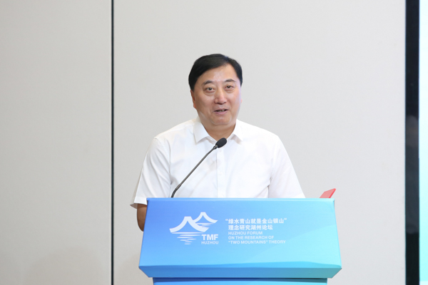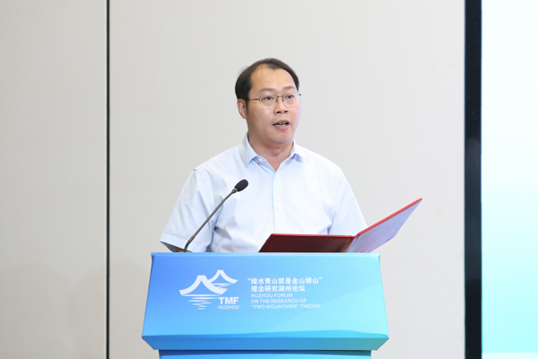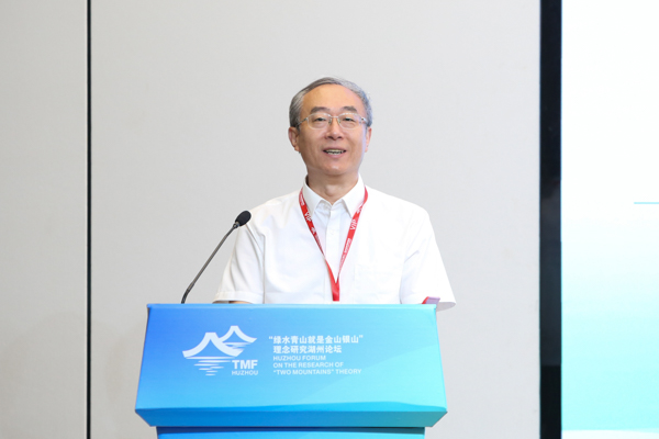 申中华致辞。他表示,沿着习近平总书记指引的方向,湖州感恩奋进、逐绿前行、蓄势蝶变,全面扮靓绿色环境的生态颜值、大力构建绿色低碳的发展模式、加快打通绿色共富的转化通道。当前,湖州正深入贯彻省、市党代会精神,推进“在湖州看见美丽中国”实干争先主题实践,奋力打造实力、活力、品质、人文、美丽、幸福“六个新湖州”,努力全方位、多维度、立体化地展示“在湖州看见美丽中国”,以优异成绩迎接党的二十大胜利召开。此次论坛是一次思想的盛宴,在绿水青山间、在脑力激荡中,相信各位“智囊”和“大咖”一定能碰撞出璀璨火花,形成丰硕成果,推动打造理论溯源的“两山”品牌、资政服务的“最强大脑”、生态文明的传播高地。