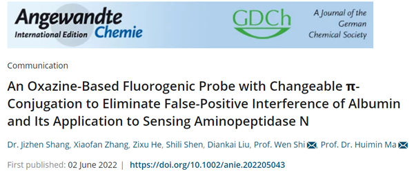 近日,我校生命科学学院湖州市医药与环境应用技术重点实验室尚积祯副教授在消除光学探针白蛋白假阳性干扰研究方面取得创新进展,以第一作者身份在国际顶级学术期刊《Angewandte Chemie International Edition》(一区TOP, IF = 16.823)上发表题为“An Oxazine-Based Fluorogenic Probe with Changeable pi-Conjugation to Eliminate False-Positive Interference of Albumin and Its Application to Sensing Aminopeptidase N”的研究成果。