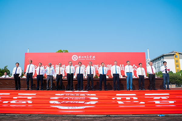 9月6日上午,我校2022级新生开学典礼暨军训动员大会在长兴广场举行。校党委书记金佩华,校长蒋云良,校党委副书记陈永华、丁敢真,副校长舒志定,校纪委书记任伟海,副校长潘音、李庆峰、楼建林,校党委委员、组织部长何小青,校党委委员、党校办主任劳士健,中国人民解放军某部队教导员、军训团团长龚国武出席。各二级学院及学校相关部门负责人、教师代表、承训部队教官和4400余名2022级本专科、研究生新生参加了开学典礼。开学典礼由丁敢真主持。