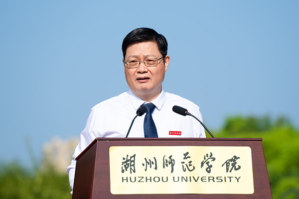 典礼上,蒋云良作了题为《怀揣梦想 不负韶华》的讲话。他向2022级新生的到来表示热烈欢迎。他表示,湖州师院是同学们人生的新起点,也将是同学们激扬青春、放飞梦想的地方。湖州师院是一所底蕴深厚、拥有较强实力、富有人文情怀的大学,在100多年的办学历程中,学校秉承“明体达用”校训,形成了“艰苦奋斗、自强不息、包容求新、博雅笃行”的师院精神,着力培养“有理想、有道德、有知识、有志向、有用、有为”的“六有”人才。他向同学们提出三点希望:一是抱持家国情怀,做一个有思想“高度”的人。要志存高远,与时代同步,与民族同呼吸,勇挑重任,书写无愧于时代的青春篇章。二是敢于创新,做一个有专业“厚度”的人。要有追求卓越的心气,充分利用学校优质的师资队伍和教学资源,多读书、善思考、勤实践。三是明德修身,做一个有人文“温度”的人。要崇德修身、砥砺品行,涵养君子之风,明大德、守公德、严私德,书写湖师人的大爱情怀。他祝愿同学们怀揣梦想、不负春光、不负韶华,在湖州师范学院这片湖学厚植的沃土上耕耘成长,火热青春思奋斗,华彩人生不虚度。