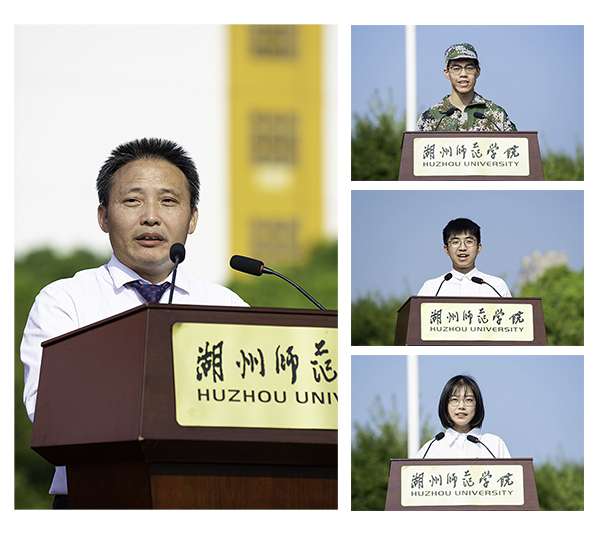 在校生代表、2022年“西门子”杯中国智能制造挑战赛全国一等奖获得者、工学院机械设计及自动化(师范)专业2019级学生唐彧恺表示,在湖州师院,同学们可以用选择成就未来、用奋斗成就卓著、用青春贡献社会,愿大家珍惜美好时光,奋力茁壮成长,练就扎实本领。新生代表、艺术学院研究生吉钰霖表示,湖州师院为同学们提供了良好的学习环境,迈入研究生阶段的自己,更要砥砺前行,利用好学校提供的机会与平台,明德立志,宽容待人,努力学习和掌握报效祖国、服务人民的本领。新生代表、教师教育学院吴宇翔表示,自己一定会秉承“明体达用”的校训,保持公正严谨的求学态度,艰苦奋斗、博雅精进,愿四年后能成长为一个理想坚定、学识深厚、勇担大任的时代新人。