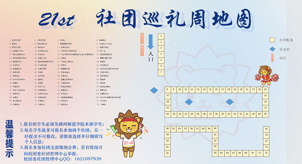 为充分展现我校社团特色、体现社团文化,营造青春活力、积极向上的校园氛围,同时更好地做好社团纳新工作,现决定举办“第二十一届社团巡礼周”。