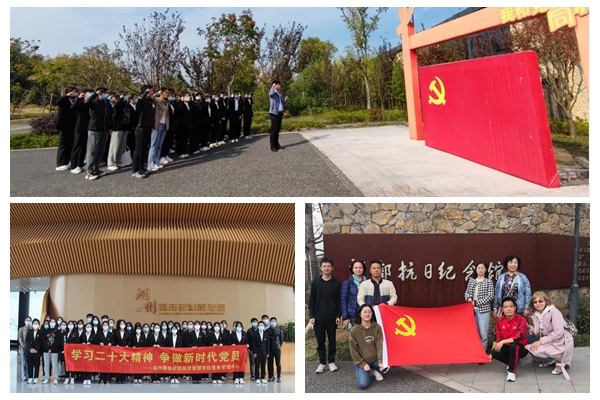 经济管理学院、国际学院师生党员们先后来到郎部抗日纪念馆,重温了抗战时期郎部子弟兵鏖战浙西、舍生取义的伟大革命精神。全体党员面向党旗重温入党誓词,回忆入党初心。经济管理学院师生还前往湖州市城市建设规划展览馆了解湖州的发展历程、悠久的历史文化、区域交通体系等情况,感受了科技创新给城市发展带来的不竭动力。