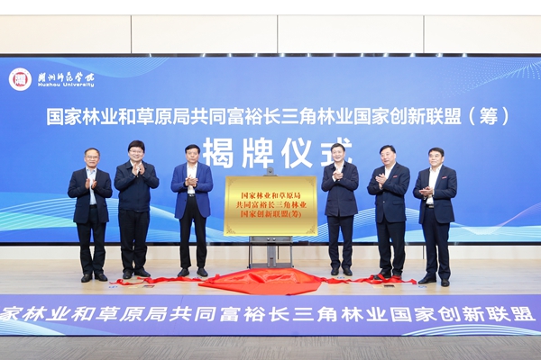 赵树丛、胡侠、王晓军、吴鸿、金佩华、张立钦共同为国家林业和草原局共同富裕长三角林业国家创新联盟(筹)揭牌。