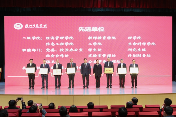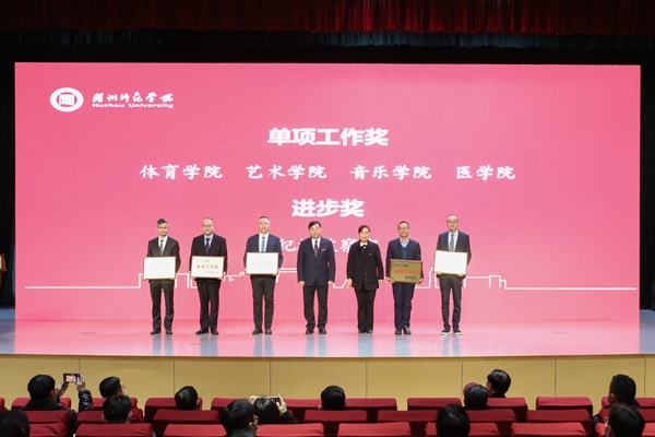 会议对2022年度获奖单位进行表彰。安定书院/创新创业学院、经济管理学院、教师教育学院、理学院、信息工程学院、工学院、生命科学学院、党委/校长办公室、学生处、研究生院、社会合作处、实验室管理处、计划财务处、保卫处、公共事务管理处等15个单位获评2022年度“工作先进单位”;体育学院、艺术学院、音乐学院、医学院/护理学院等4个学院获2022年度“单项工作奖”;纪检监察室获2022年度“工作进步奖”。